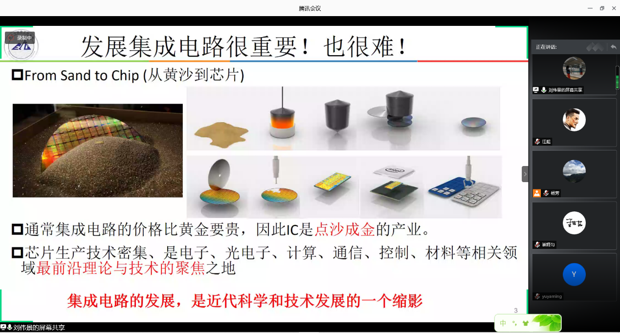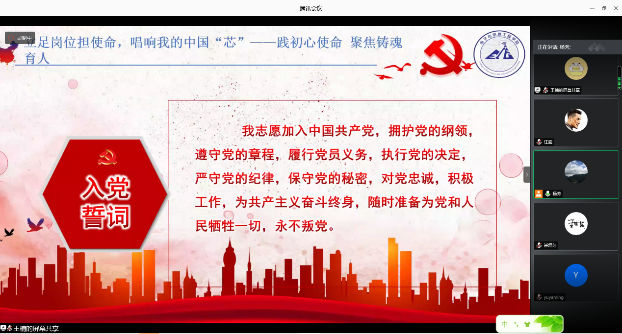 715日下午,信誉最好的十大体育平台电子科学学科教工党支部专题组织生活展示在腾讯会议举行。此次活动主题为“立足岗位担使命,唱响我的中国‘芯’”。由电子与信息工程公司党委副书记周冬梅主持,电子科学学科教工党支部全体党员以及各公司党员代表参加了此次活动。