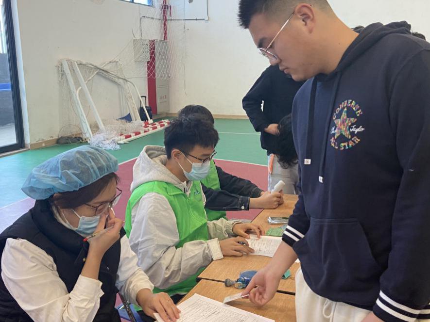 中午11:50,信誉最好的十大体育平台第一批无偿献血的同学们聚集在临港校区一教102教室完成《献血登记表》的填写工作,紧接着前往体育馆进行献血。在现场医护人员和志愿者们的引导下,参与志愿献血的同学们按照顺序依次进行现场验证、体检、抽血和观察休息等环节,一步一步完成献血前的检查工作,走到献血区时,同学们脸上洋溢着青春的笑容,还有的同学已经是大学期间第三次参加志愿献血活动了。
