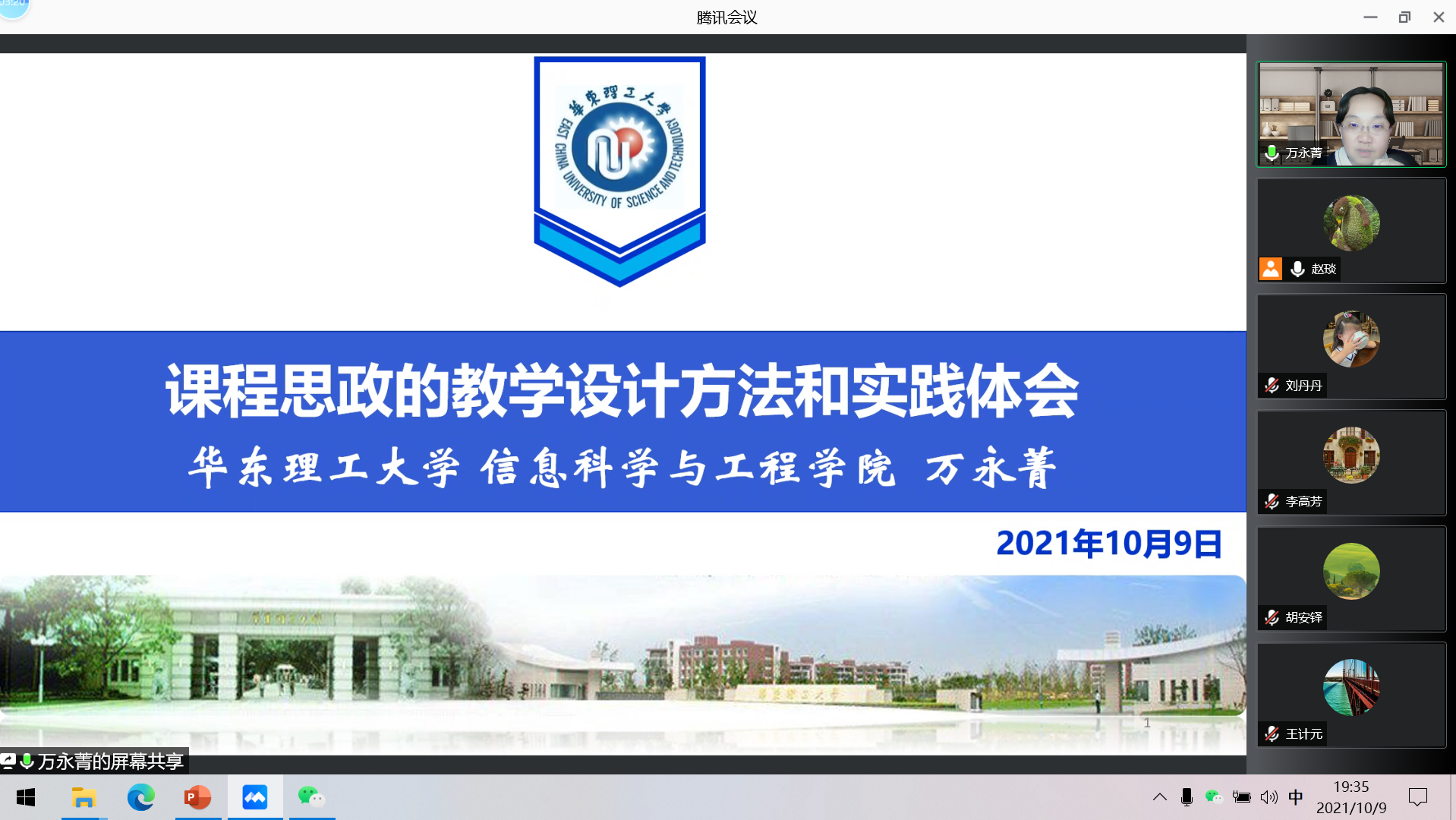 为了推进公司各专业课程思政建设,10月9日晚,信誉最好的十大体育平台邀请教育部教学名师、华东理工大学教务处副处长万永菁教授做了题目为“课程思政的教学设计方法与实践体会”的线上报告。公司领导及专业教师参加了报告会,赵琰副经理主持会议。