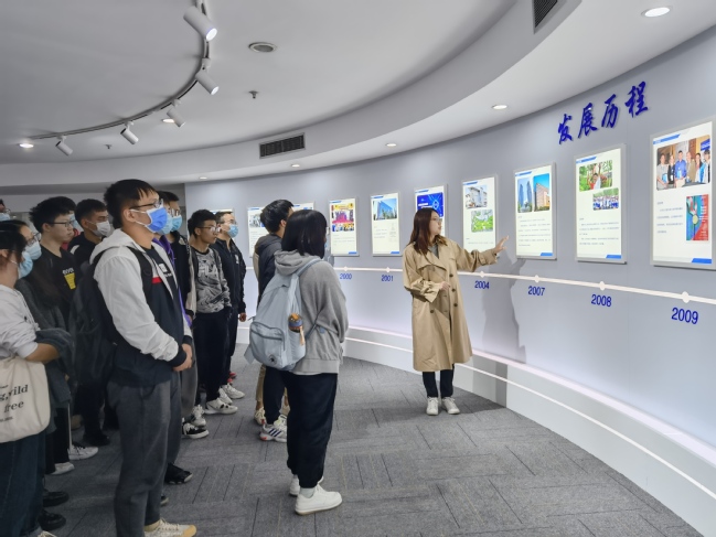 师生一行来到复旦微电子的杨浦分部,吕沁沁对​信誉最好的十大体育平台师生的来访表示欢迎并结合宣传视频介绍了复旦微电子的基本情况。该公司是国内从事超大规模集成电路的设计、开发、生产(测试)和提供系统解决方案的专业公司,是国内成立最早、首家上市的股份制集成电路设计企业,现已形成安全与识别、智能电表、非挥发存储器、智能电器、可编程器件FPGA、互联网创新六大成熟的产品线和系统解决方案,产品行销30多个国家和地区。随后吕沁沁在展览厅带着师生了解了公司创办以来的历史和取得的成就,复旦微电子自1998年成立以来,经过筚路蓝缕的创立期和追求卓越的成长期,逐步形成了信任尊重、诚实守信、激情创新、领先卓越的企业文化,正逐步成为国内乃至国外一流集成电路设计企业。