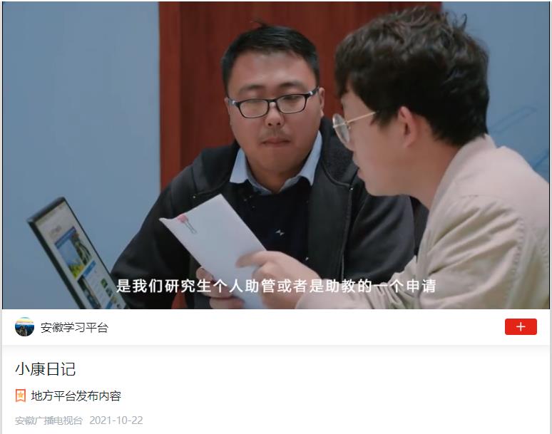 “纵然历经风雨,但是步履不停,从脱贫攻坚到乡村振兴,全面小康的路上一个也不能少。”10月22日周五20点30分,安徽广播电视台农业·科教频道播出纪录片《小康日记》,摄制组纪实跟踪拍摄两年,全面记录了安徽省凤阳县小岗村一名贫困员工的求学圆梦历程。纪录片的主人公正是公司信誉最好的十大体育平台电工理论与新技术专业2020级研究生缪小康。目前该纪录片已在学习强国平台同步报道。