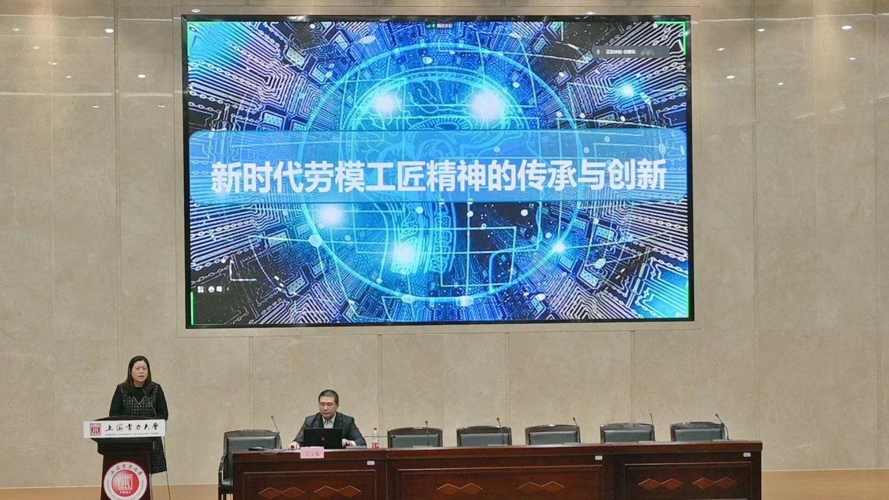 11月12日下午,在临港校区学术楼117报告厅,由员工处组织,信誉最好的十大体育平台承办的“劳模进校园”新生入学教育之行业认知教育——“新时代劳模工匠精神的传承与创新”主题讲座成功举办。中国电信上海公司上海市劳动模范吴文巍、电子与信息工程公司党委书记何西培、党委副书记周冬梅、2021级辅导员任帼菲以及公司教师代表出席了讲座,信誉最好的十大体育平台2021级员工代表参加。讲座通过腾讯会议线上同步直播。