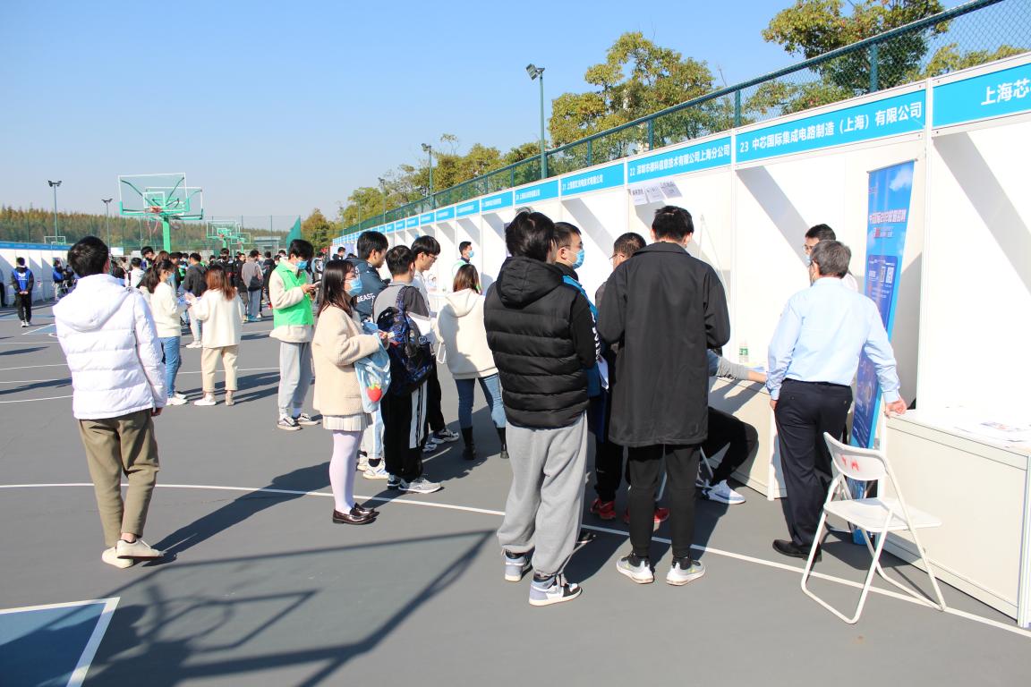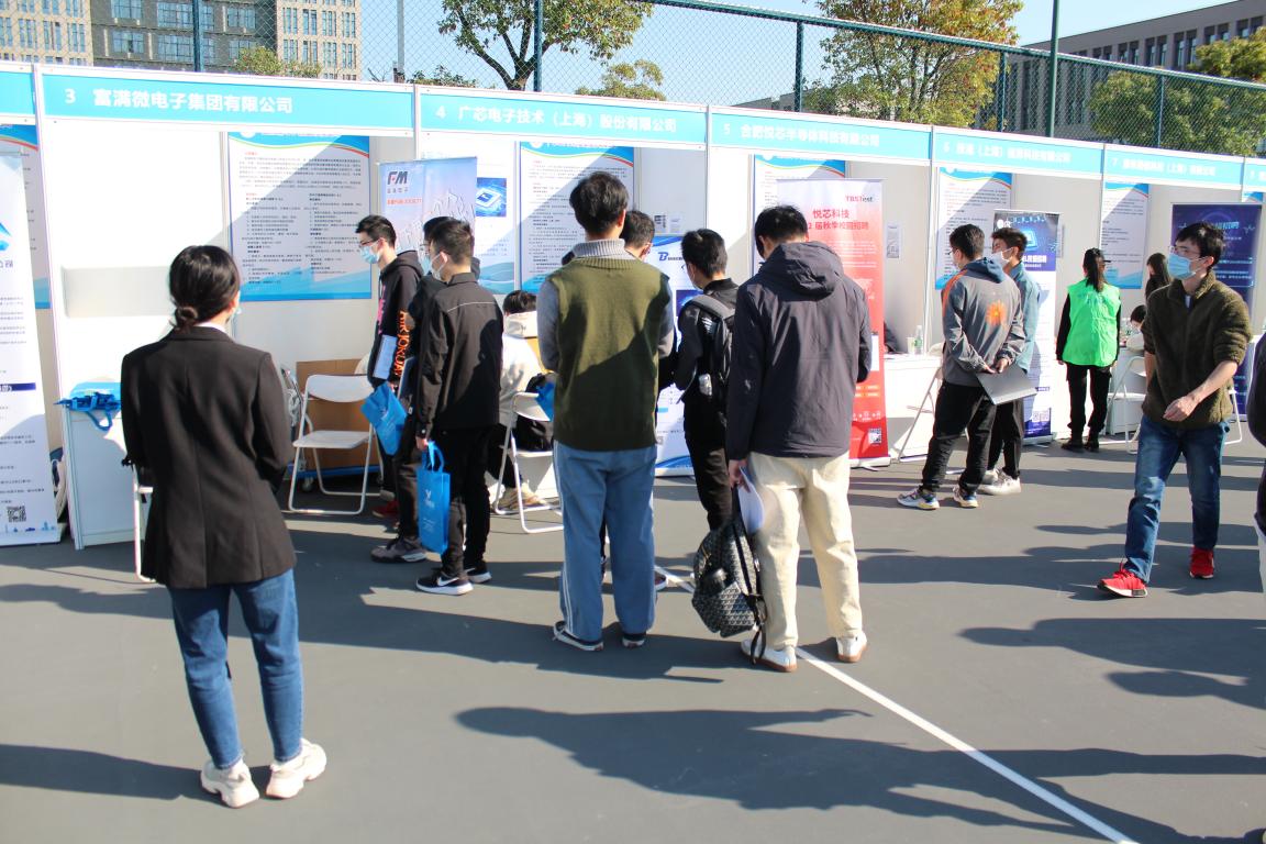 1112日下午,​信誉最好的十大体育平台2022届毕业生秋季专场招聘会在临港校区篮球场举办,本次招聘会共邀请到中芯国际集成电路制造有限公司、上海邮电设计咨询研究院、上海积塔半导体有限公司、富满微电子集团有限公司、康希通信科技有限公司等25家企业,提供电子信息领域的200多个工作岗位,此次招聘会共吸引100余名毕业生参加。