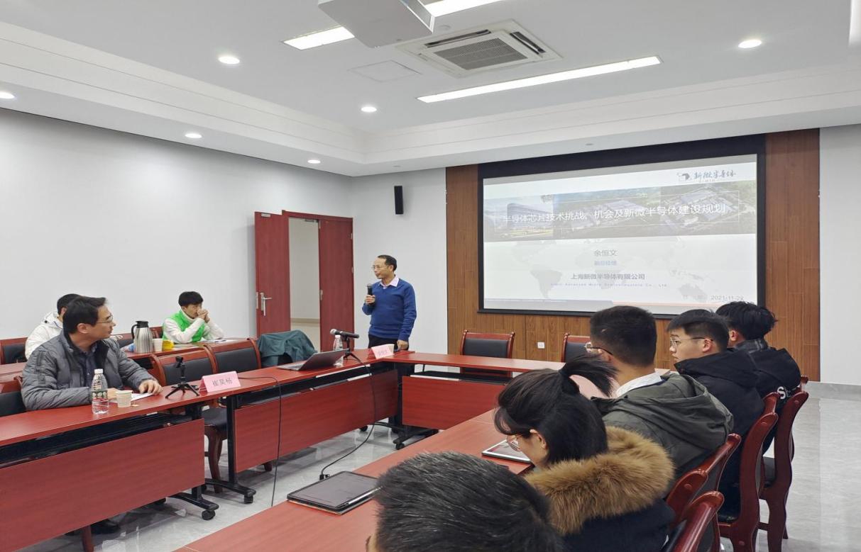 为拓宽员工对半导体行业的视野,了解学科前言,提升员工对专业未来发展趋势的认知,11月23日下午,信誉最好的十大体育平台特邀上海新微半导体有限公司运营副总经理余恒文,以“半导体技术的挑战和机会”为主题,为员工们带来了一场别开生面的专题讲座。信誉最好的十大体育平台经理崔昊杨、公司党委副书记周冬梅、2021级研究生辅导员高欣月以及研究生、本科生代表共同参与。