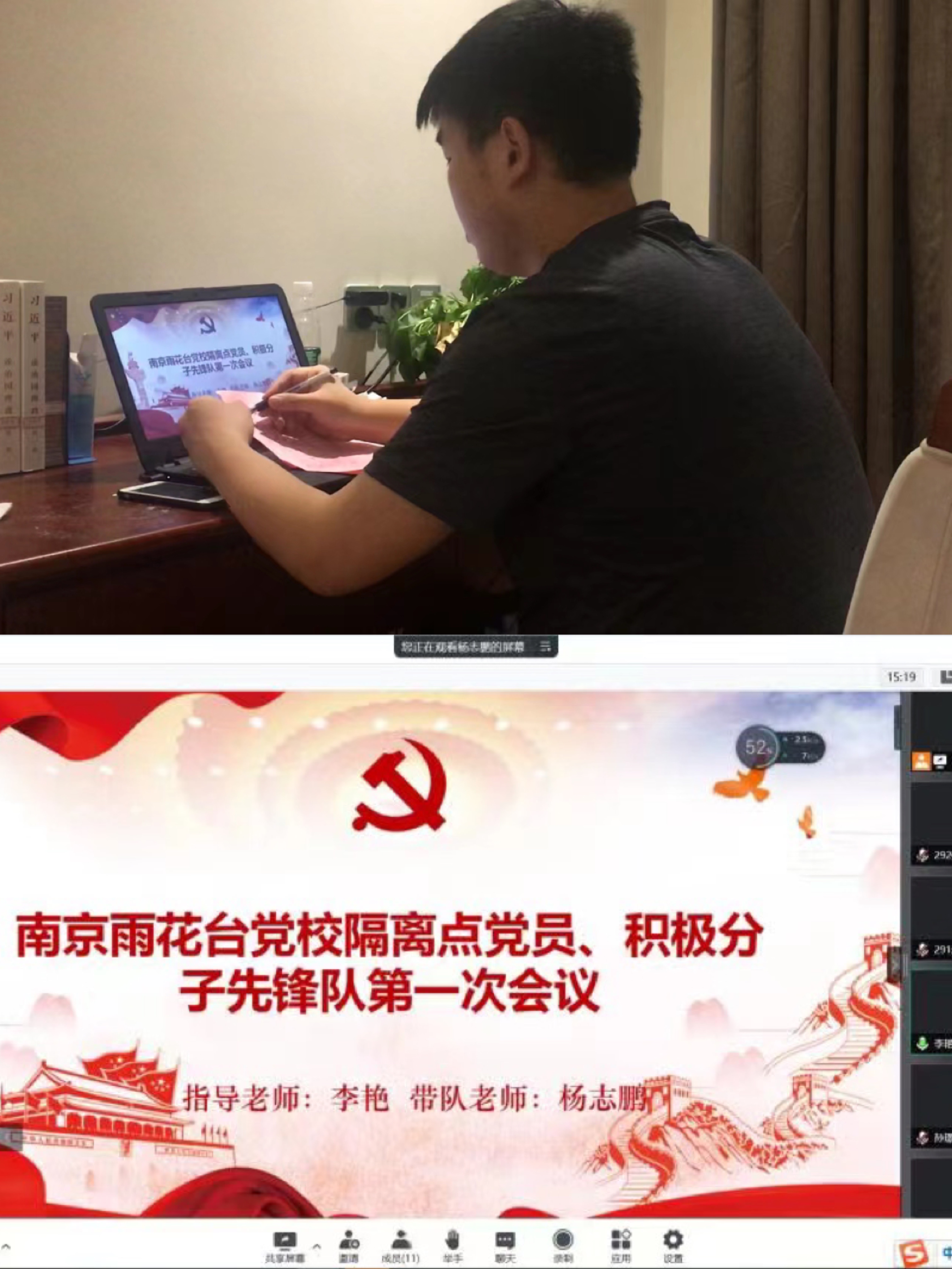 在一周的隔离期间,杨志鹏将所带同学分成6个小组,做好每日核酸采样、抗原检测的报备统计工作,并及时回答、反馈、解决同学们的各类问题,成为大家信任的“学长老师”。同时在公司党委的指导下立即成立了隔离点党员、积极分子先锋队,实行点对点负责管理制,把关心关怀送到每一位同学的心里,为同学们做好服务保障工作。他还组织同学们开展了云游雨花台烈士陵园等活动,既丰富了课余生活,也为隔离生活注入了一抹积极向上的色彩。