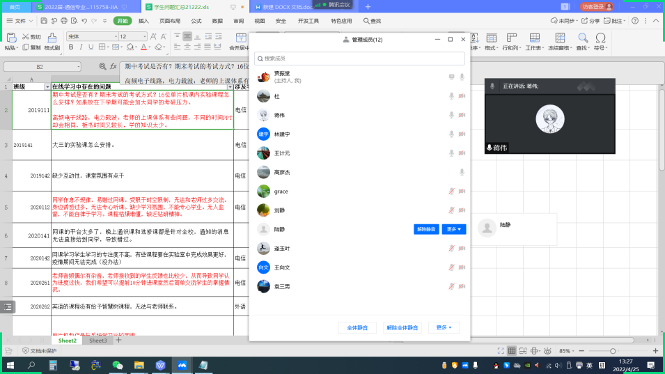 电子信息工程专业坚持每周日开会,重点讨论工程认证7个工作小组阶段任务,同时对线上教学注意事项、卓越班选拔等重点工作向专业教师进行解读。通信工程专业向教师们反馈了员工座谈会的员工意见,希望教师关注员工反应反馈,加强与员工的沟通交流,活跃线上课堂气氛。同时鼓励教师积极开展工程认证的课程建设工作。电子科学与技术专业在教研活动中讨论了期中教学检查中反馈问题级注意事项,部署了培养方案修订工作。光电信息科学与工程专业针对专业发展、毕业设计抽检及员工反馈意见召开了多场教研活动。