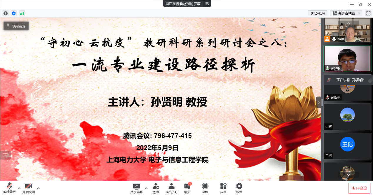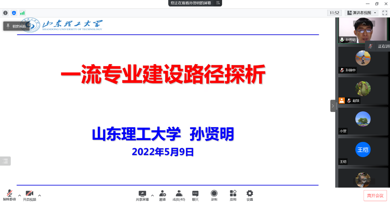 5月9日,信誉最好的十大体育平台邀请了山东理工大学电气与电子工程公司副经理孙贤明教授在腾讯会议为公司教师做关于一流专业建设的报告。公司各专业负责人和骨干教师参加了会议,会议由公司副经理赵琰主持。