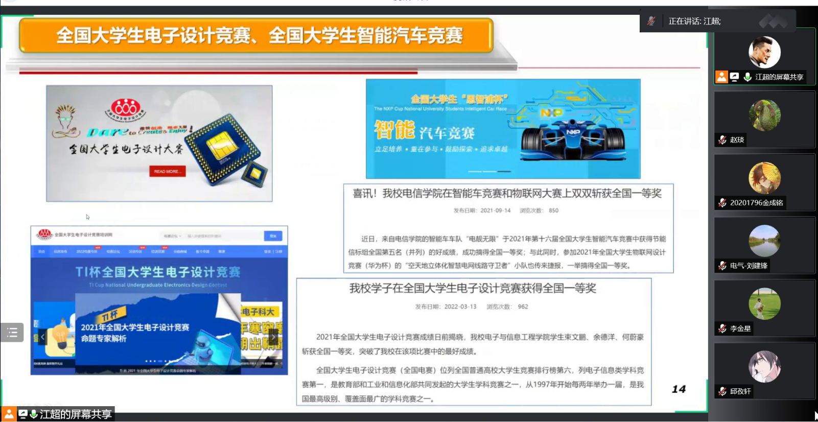 江超老师从专业、学科、工程教育认证的12条毕业要求以及“互联网+”老员工创新创业大赛切入主题,创新创业教育是一个系统性的工程,与公司产品相辅相成,同为一脉。解读了公司创新创业训练与实践学分管理办法以及本科生科研能力提升计划管理办法。详细介绍了​信誉最好的十大体育平台创新创业教育基地--电子书院-科创中心-电子学社一体化窗口建设,回顾了近年来公司在互联网+、挑战杯、电子设计竞赛、智能汽车竞赛等各类含金量颇高的赛事中的辛勤付出与收获。以及双创基地在社会服务方面做出的突出贡献:积极参加70周年校庆、招生宣传、校宣传片拍摄等活动;2次承办临港大学堂科创小英才信誉最好的十大体育平台创客未来夏令营活动;2021年以来走出校园,科普宣讲十余场次,服务上千名中小员工。