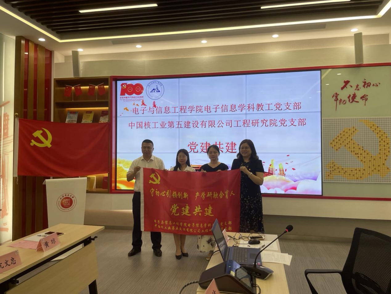 为迎接中国共产党成立100周年,进一步推进校企结对共建,实现优势互补,资源共享,互利共赢,共同提高科研育人能力。628日,信誉最好的十大体育平台电子信息学科教工党支部与中国核工业第五建设有限公司工程研究公司党支部联合开展“守初心引领创新,产学研融合育人”主题党日活动。公司党建服务中心/党建督查室特邀党建督查员梁磊,继续教育公司(国际教育公司)党总支副经理李平,电子信息工程公司党委书记何西培,中国核工业第五建设有限公司工程研究公司党支部书记、经理程定富等出席活动,全校各二级党组织党员代表参加观摩。