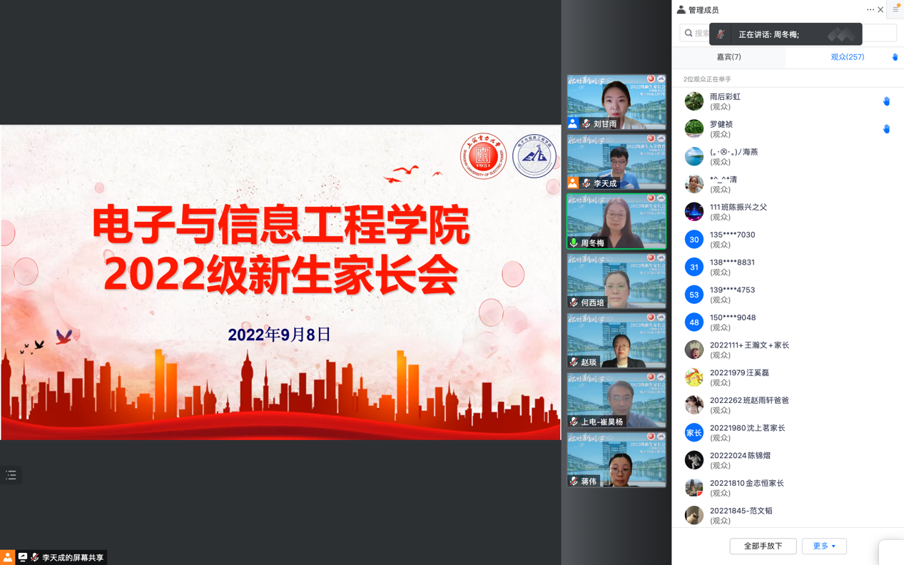 9月8日晚,​信誉最好的十大体育平台召开了全体新生线上家长会,向新生家长们介绍了公司、公司、专业情况、员工学籍管理、考研升学、员工事务管理等工作,帮助新生家长们进一步了解员工进入大学之后的管理体系、学习内容和发展方向,引导新生家长主动关心员工学业规划、心理健康以及环境适应等问题,明确大学阶段家长的职责,增强家校合作,实现家校共育,助力和保障每一位员工成长成才。