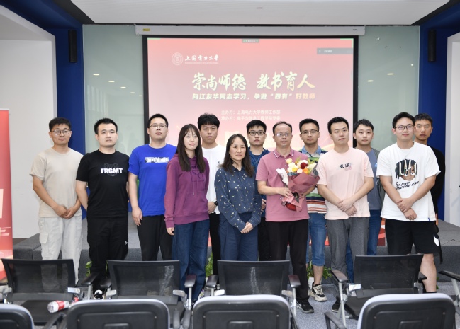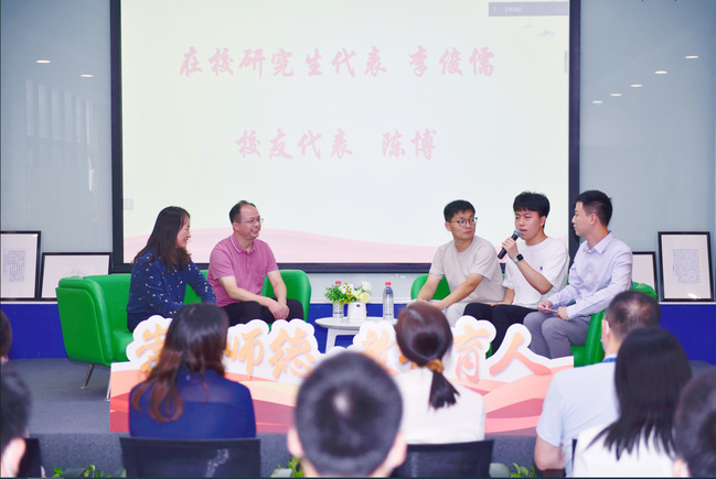 在互动交流环节,同事代表杨芳分享了江老师教书育人过程中如何践行立德树人的初心和使命,认为江老师对待工作的认真负责,对待生活的积极乐观,对待员工的精心培养,是我们学习的榜样;在校研究生代表李俊儒讲道自己在科研中遇到困惑和不解时,江老师都会循循善诱地指导、耐心细致地解惑,在生活和学习上给予了非常大的帮助;员工代表陈博表示在读研期间江老师的高标准严要求使自己在步入工作岗位后依然保持着严谨的工作习惯,即使在毕业后每一次与江老师聊工作谈生活,也都能收获满满的勇气和力量。