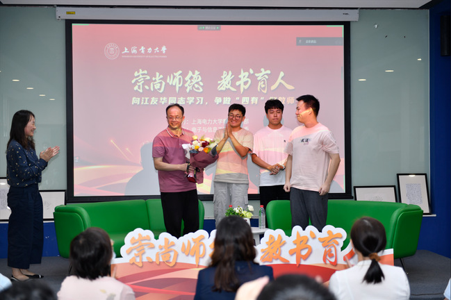 浓浓师生情,拳拳桃李意。在师德讲堂接近尾声时,员工代表为江老师献上鲜花,再次表达对江老师的祝贺与感谢。