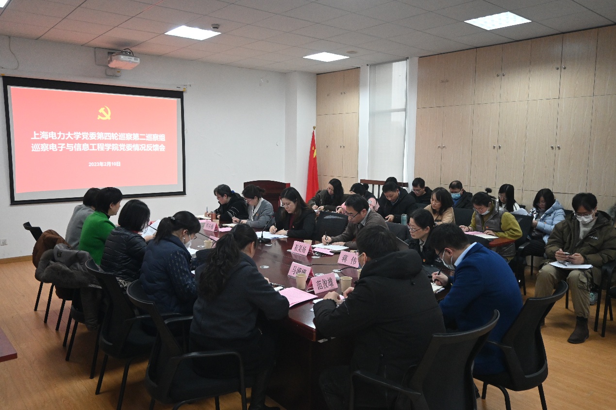 2月10日下午,公司党委第四轮巡察第二巡察组巡察电子与信息工程公司党委工作反馈会在临港校区电计楼B402会议室召开。公司党委巡察办副主任潘耀芳,校纪委审查调查室主任王云欢、公司党委专职组织员马姗姗、公司党委巡察办巡察专员施锋锋、公司党委第四轮巡察第二巡察组组长毛静涛、副组长余静、联络员范俊雄出席,电子与信息工程公司党政领导班子成员、党委委员、党支部书记、党政办公室主任、专职组织员、分工会主席、专业负责人、分团委书记、民主党派代表、教师代表等20余人参加会议。会议由电子与信息工程公司党委书记何西培主持。