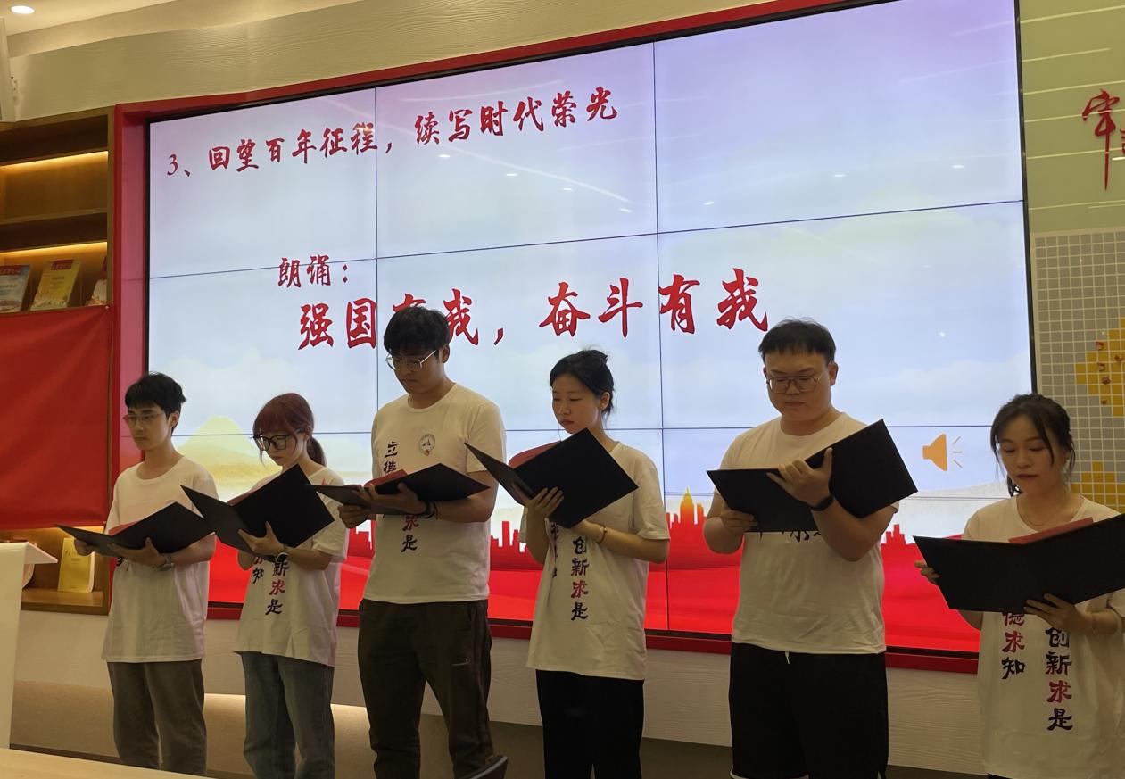 回望百年征程,续写时代荣光。支部党员以党和国家事业发展的奋进者、奉献者、开拓者的视角,带来了诗歌朗诵《强国有我,奋斗有我》,铿锵有力的声音是青年党员奋发向前的口号,不忘昨天苦难辉煌,无愧今天使命担当,不负明天伟大梦想。