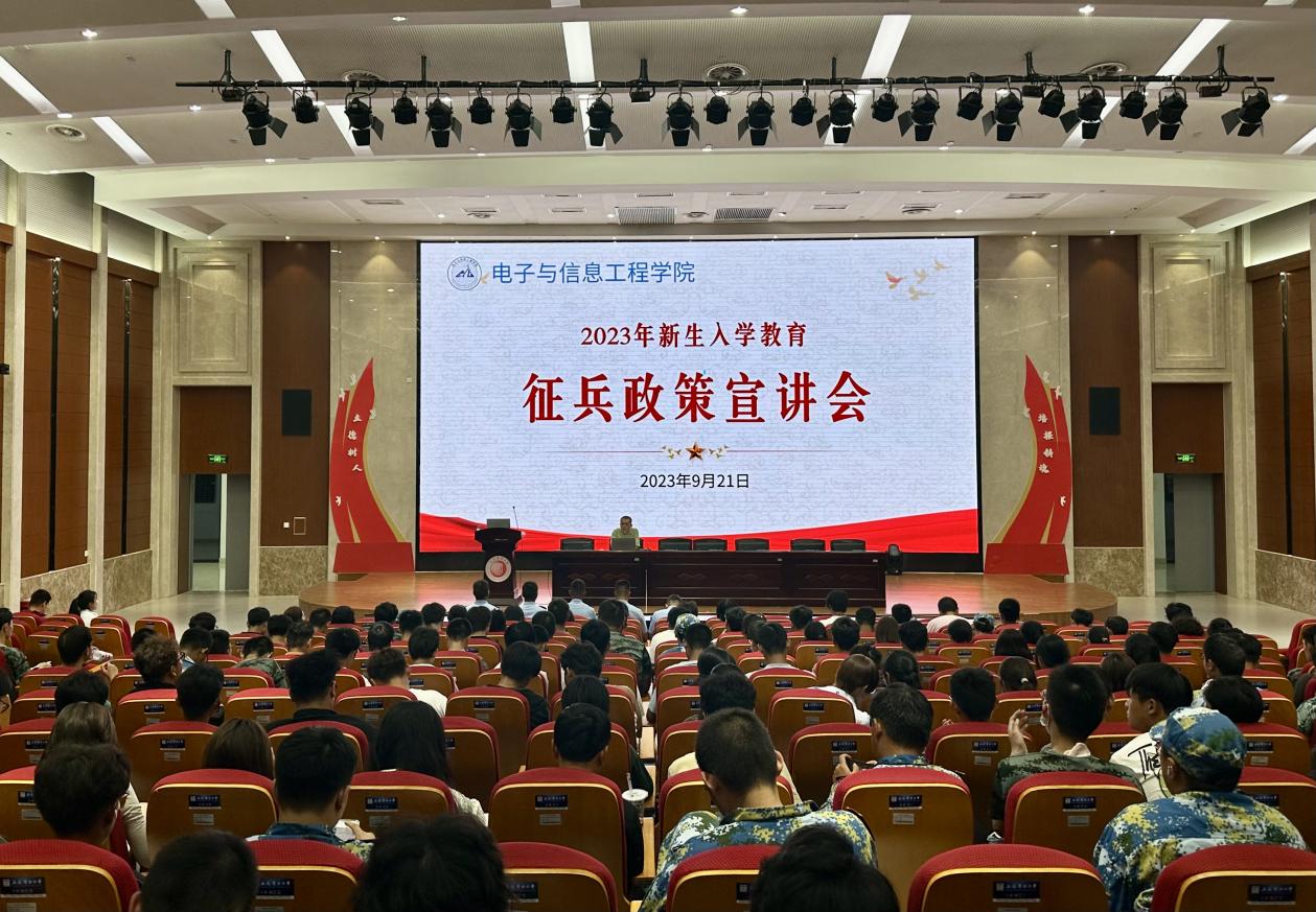 为扎实有效推进2024年征兵入伍工作,对新生做好国防教育,激发员工参加入伍热情,近日,​信誉最好的十大体育平台在学术楼117报告厅组织召开2023年新生入学教育系列活动之征兵政策宣讲会。公司征兵工作负责人阮文杰、本科新生辅导员、军训教官、退伍士兵代表以及全体新生参会。