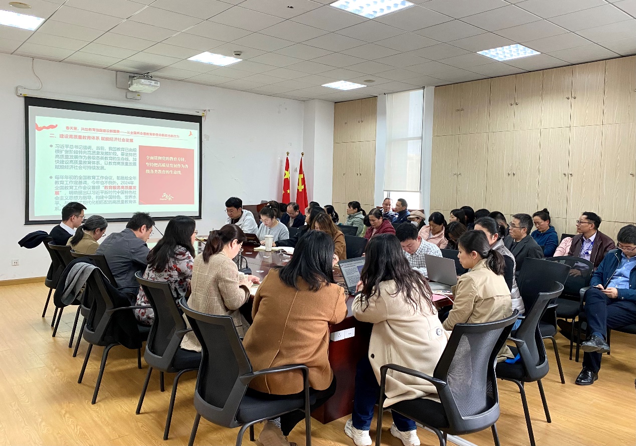 何西培从文章《春天里,共绘教育强国建设新图景——从全国两会看教育新使命新担当新作为》为切入点,首先向全体教师传达了全国两会精神,指出全国两会是跳出教育看教育的一个窗口,立足全局,放眼长远,把准教育在中国式现代化进程中的定位和方向。她指出要结合公司和公司的发展实际情况,深入了解国家改革发展的新方向和新要求,紧跟时代步伐,勇于创新实践,始终坚持以人为本的教育理念,关注员工的全面发展,深入挖掘教育资源,加强师德师风建设,提升公司产品质量,推动教育创新发展,为公司的全面发展注入新的活力和动力。
