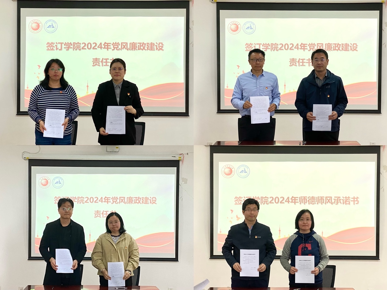 公司党政班子成员、重点岗位负责人分别签订了公司《2024年党风廉政建设责任书》,全体与会人员集体签订了公司《师德师风承诺书》,并观看了警示教育片《持续发力 纵深推进》第三集《强化正风肃纪》,教育引导党员师生自觉做到防微杜渐、对照反思,严守廉洁底线。