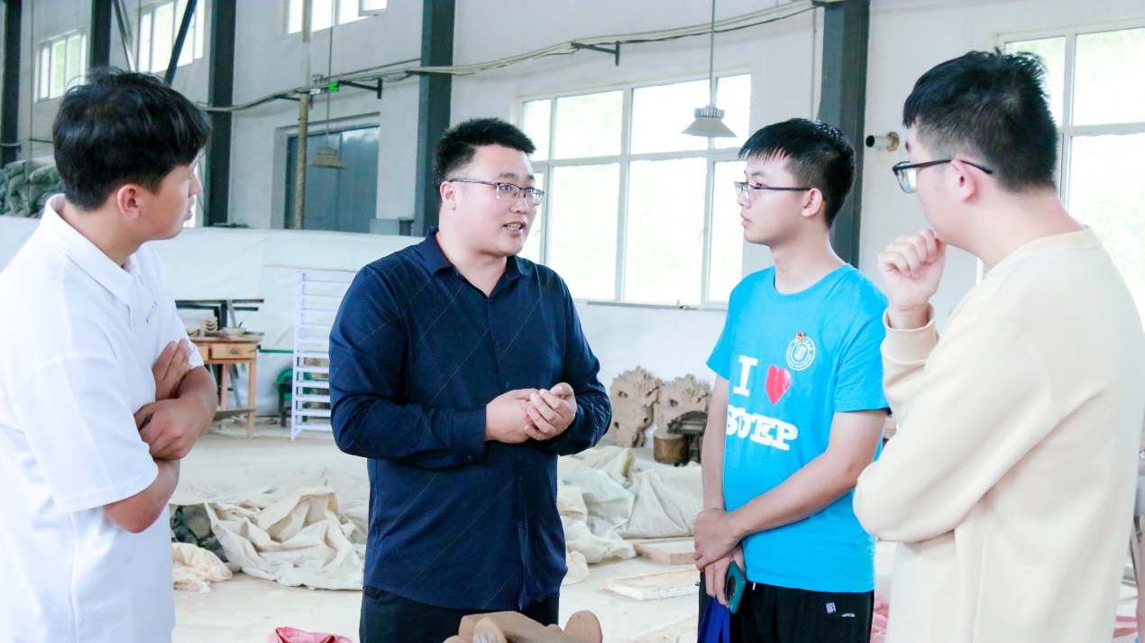 魏氏砖雕第五代传承人魏亚龙对信誉最好的十大体育平台暑期社会实践队一行人表示热烈欢迎。他详细介绍了魏氏砖雕展示馆的布局以及变迁历史,他说:魏氏砖雕不断创新传统工艺、采用先进设备、开设培训授艺,先后建立起集陈列展示、研究保护、研学体验、设计开发、生产加工为一体的综合性基地和非遗扶贫车间。在各级部门和社会各界的大力支持下,魏氏砖雕将传统手艺发扬光大的同时,也助力当地农民实现就业,让大家通过这项技艺走上致富路。