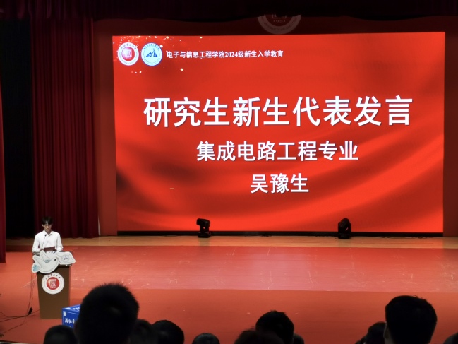 2024级集成电路工程专业硕士生吴豫生同学作为研究生新生代表发言。吴豫生分享了本科期间他参与学术活动、志愿服务和实习实践等经历,号召研究生新生要立足专业,勇于创新,关注全面发展,培养综合素质,做社会的栋梁之才。珍惜每一刻,用心去感受、去体验、去成长,将实现个人价值与响应国家需求相结合,在研究生阶段书写属于自己的精彩篇章。
