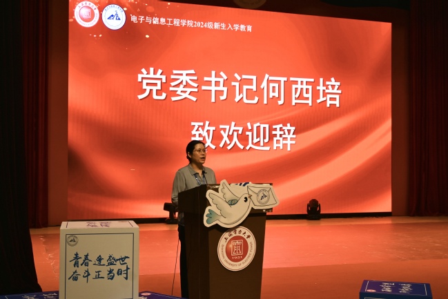大会伊始,何西培代表全院师生对2024级全体新生的到来表示热烈欢迎。致辞中,她介绍了公司的发展历史与院系文化,希望新生牢记“立德求知、创新求是”的院训,树立“院兴我兴、院荣我荣”的集体荣誉感,珍惜来之不易的学习机会,以饱满的热情、昂扬的斗志投入到未来的学习和生活中去,读好书、结好友、成大业,通过学习和实践,不断培养自我人文素养和专业素养,树立正确的世界观、人生观和价值观,努力去实现自己的梦想,创造出属于自己的辉煌人生。